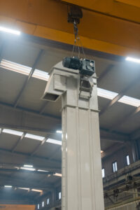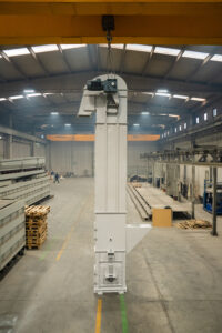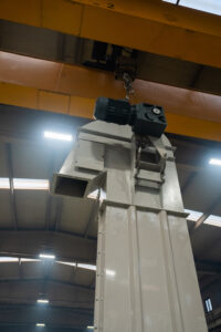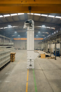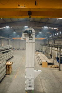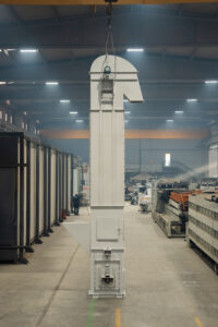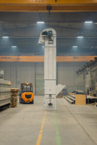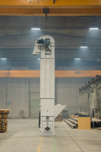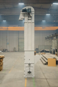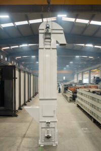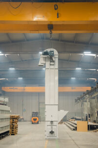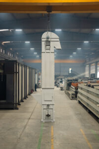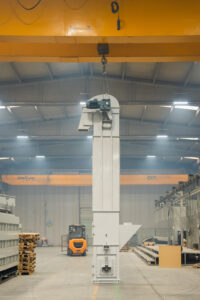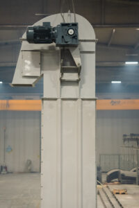 Es handelt sich um Anlagen, die den Transport von Schüttgütern mit einer Neigung von bis zu 70° in Anlagen ermöglichen, die im Bergbau, in der Zementindustrie, in der Eisen- und Stahlindustrie und in der Landwirtschaft eingesetzt werden. Die Elevatoren befördern das Material mit Hilfe von Bechern und entladen es im Mittenauslaufverfahren.
